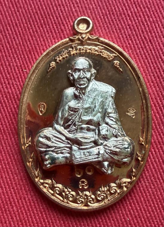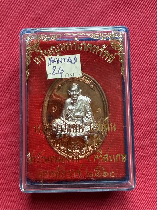 วัดใจไปเลย เหรียญมหาโภคทรัพย์หลวงปู่แสน วัดบ้านหนองจิก จ.ศรีสะเกษ ปี 2560 เนื้อทองแดงหน้ากากเงิน หมายเลข 60