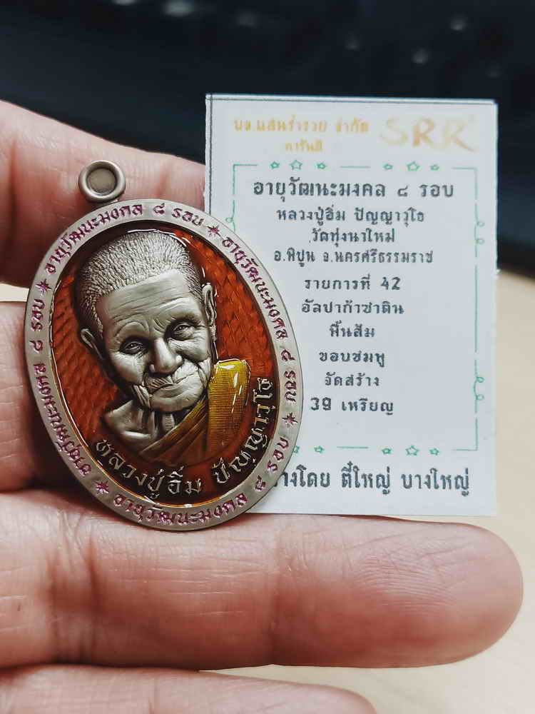 วัดใจ 100 เหรียญอายุ 8 รอบ หลวงปู่อิ่ม วัดทุ่งนาใหม่ จ.นครศรีธรรมราช 2566 อัลปาก้าซาติน ลงยา หมายเลข 15 สร้าง 39 กล่องเดิม