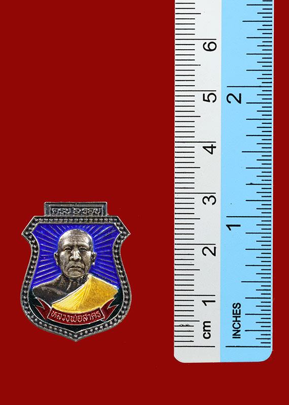 เนื้อเงินลงยา 3 สี ( แดง เหลือง สีน้ำเงิน ) ขนาด 2.1 ซ.ม. X 2.7 ซ.ม.