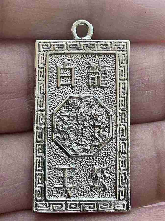 *ที่ฆ้อนมีอีกเยอะครับ เคาะเดียว* เหรียญป้ายชื่อ หลวงปู่มังกรขาว เนื้อกะไหล่เงิน บรรยายตามภาพ สวยเดิมๆครับ |