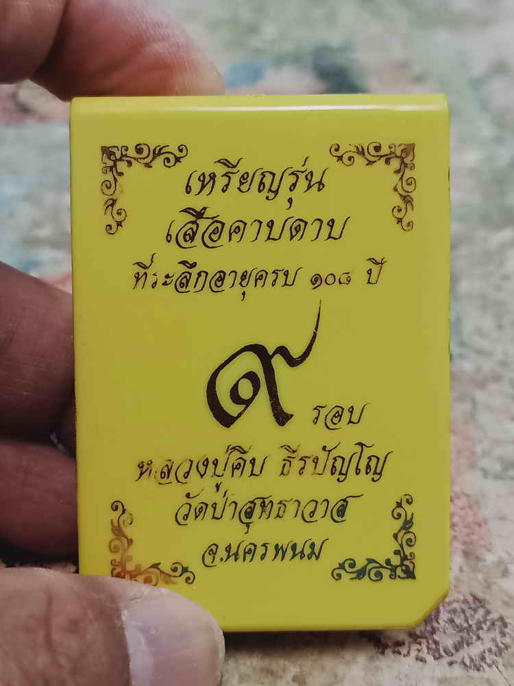 วัดใจ 100 เหรียญเสมาเสือคาบดาบ 9 รอบ หลวงปู่คีบ ธีรปัญโญ อายุ 108 ปี วัดป่าสุทธาวาส จ.นครพนม ปี 2567 มหาชนวน ผิวรุ้ง ลงยาจีวร หมายเลข 484 กล่องเดิม
