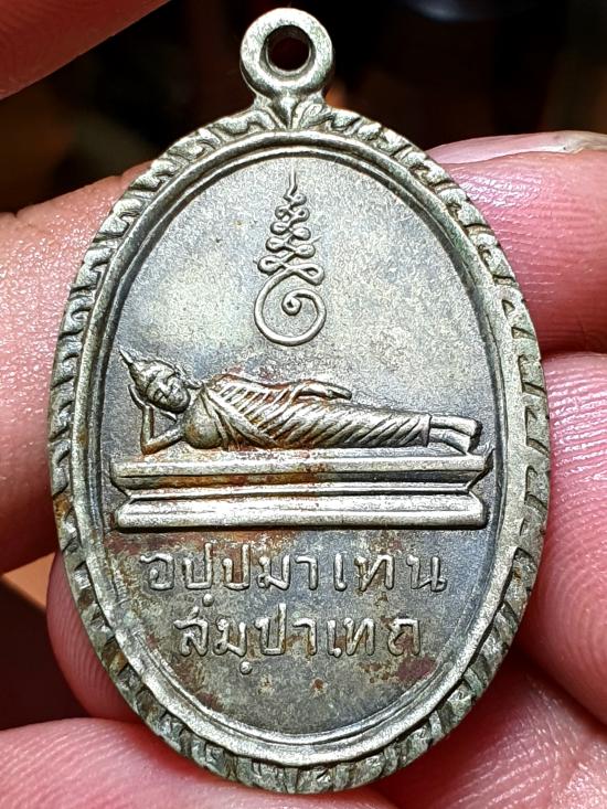 เหรียญพระแท่นดงรัง พระปางไสยาสย์ ที่ระลึกเสด็จพระราชดำเนินพระแท่นดงรัง ปี 2512 เนื้ออัลปาก้า
