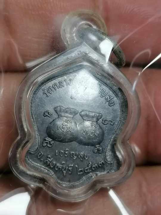 เหรียญรุปเหมือนครึ่งองค์หลังขวัญถุง มั่งมี เงิน ทอง เจริญสุข เนื้อเงิน หลวงปู่บุดดา วัดกลางชูศรี จ.สิงห์บุรี ปี 2533 เลี่ยมเดิม |