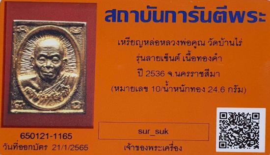 ** บัตรการันตีพระ