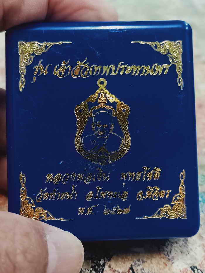 วัดใจ 100 เหรียญเจ้าสัวประทานพร หลวงพ่อเงิน พุทธโชติ วัดท้ายน้ำ โพทะเล จ.พิจิตร 2567 ฝาบาตร ลงยา นำฤกษ์ หมายเลข 2 สร้าง 15 กล่องเดิม