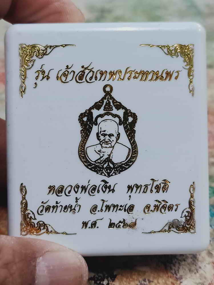 วัดใจ 100 เหรียญเจ้าสัวประทานพร หลวงพ่อเงิน พุทธโชติ วัดท้ายน้ำ โพทะเล จ.พิจิตร 2567 ทองทิพย์ผิวชนวน ลงยา หมายเลข 22 สร้าง 49 กล่องเดิม