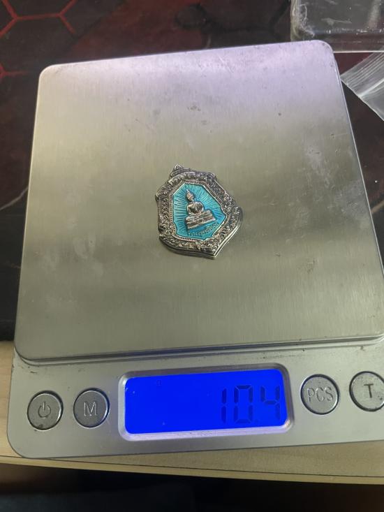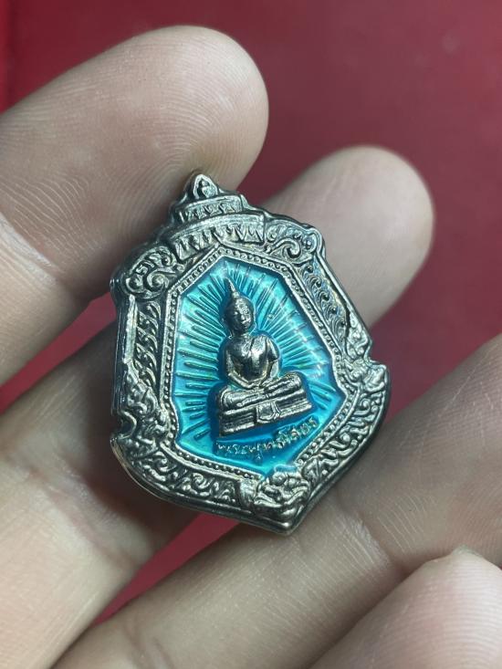 เหรียญประจำตระกูล หลังเรียบ เนื้อเงินลงยาฟ้า หลวงพ่อโสธร วัดโสธรวรารามวรวิหาร