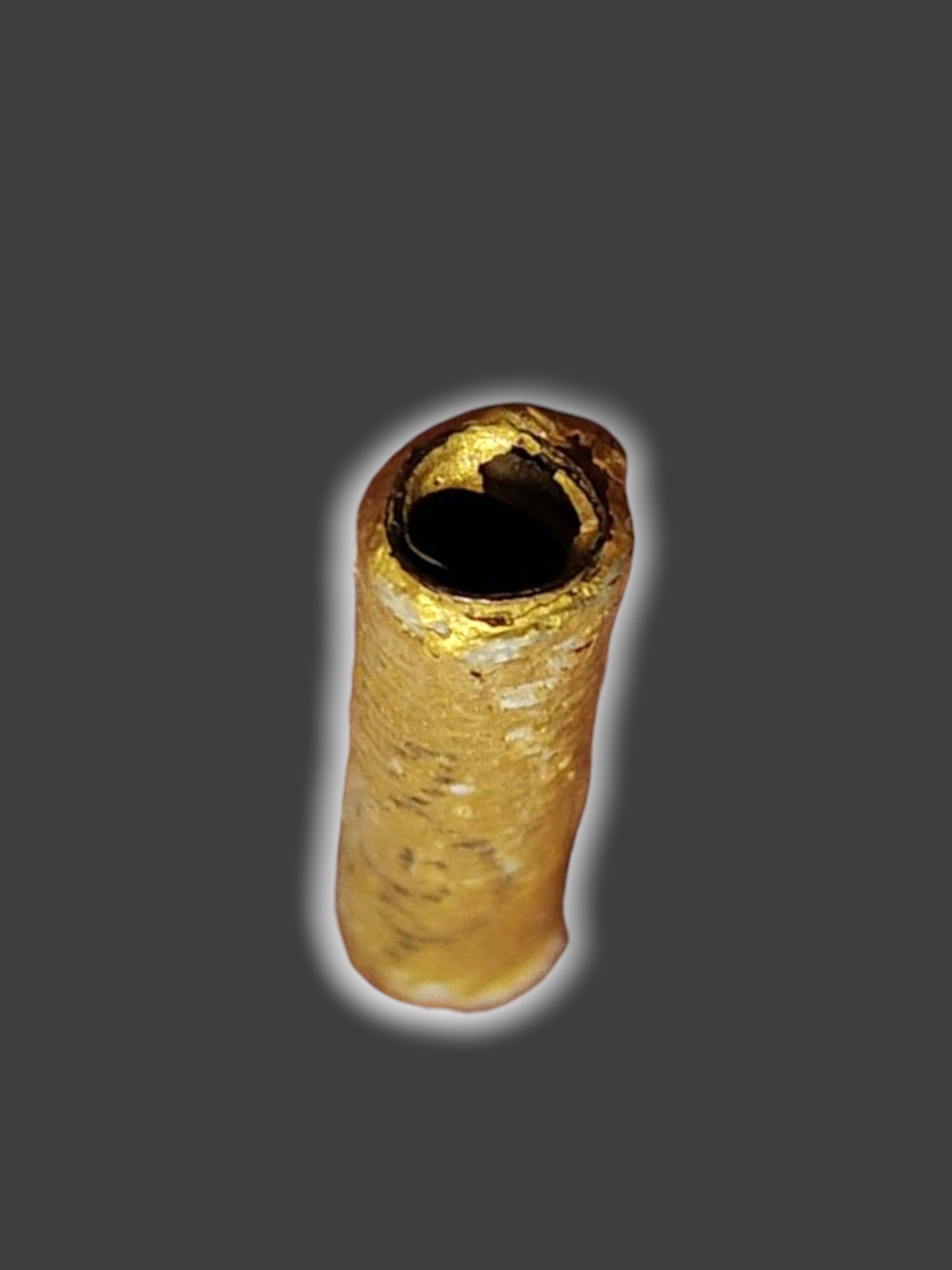 A6732.เครื่องรางตะกรุดพันเชือกทาทอง ไม่ทราบสำนัก ยาว1นิ้ว เคาะเดียวเเดง