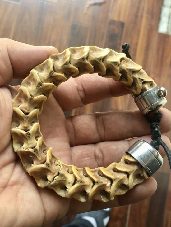 รายละเอียด มรดกนายพราน กระดูกงูเหลือมตายพราย ของดีหายาก มีดีในตัว กันเขี้ยวงา เสริมอำนาจ บารมี