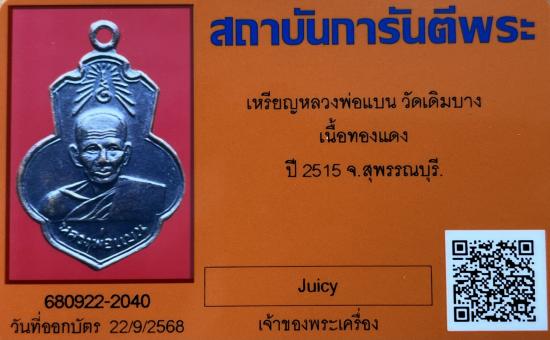 เคาะเดียว**เหรียญหลวงพ่อแบน วัดเดิมบาง จ.สุพรรณบุรี ปี2515 (หลวงพ่อกวยปลุกเสก)