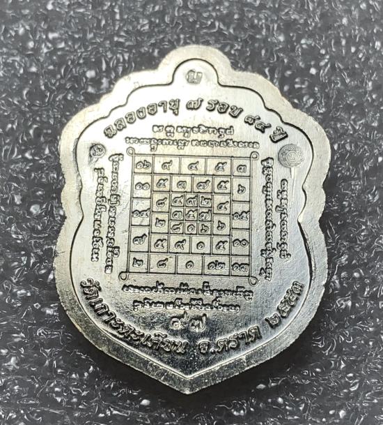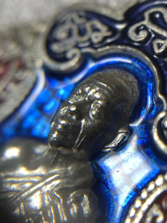 เหรียญเสมาเจ็ดรอบ เนื้อเงินขุดพื้นลงยาสีน้ำเงิน ๑ ใน ๑๕๐ เหรียญ หมายเลข ๙๗ รุ่นนี้ถือเป็นเหรียญหลักยอดนิยมของสายนะครับ พระสวย จมูกโด่งกลม