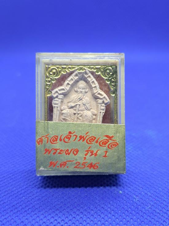 พระผงเทพเจ้าตั่วเหล่าเอี๊ย หลัง เจ้าพ่อเสือ รุ่นแรก ศาลเจ้าพ่อเสือเสาชิงช้า ปี2546 กรุงเทพ (สภาพสวยเดิมกล่องเดิมไม่ผ่านการใช้) เคาะเดียว