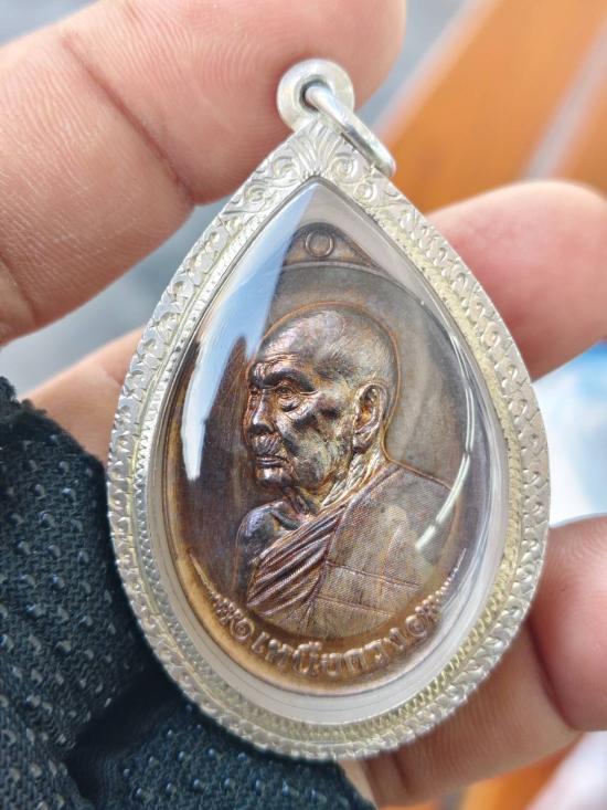 เหรียญเหนือดวง หลวงปู่คีบ วัดป่าสุทธาวาส นครพนม เนื้อนวะเลขสวย 456 เลี่ยมกรอบเงินสั่งทำ