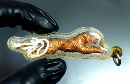 วัดใจ เสือปืนแตก รุ่น 5 หลวงปู่แย้ม วัดตะเคียน นนทบุรี เลี่ยมกรอบพร้อมสายสินธ์เดิมของวัด
