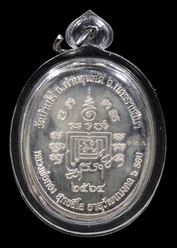 เหรียญ 5 แชะ หลวงพ่อทอง วัดบ้านไร่ จ.นครราชสีมา อายุวัฒนมงคล 6 รอบ พ.ศ.2564 เนื้อเงินลงยา ตอกโค๊ต ตอกเลข เลี่ยมกันน้ำ