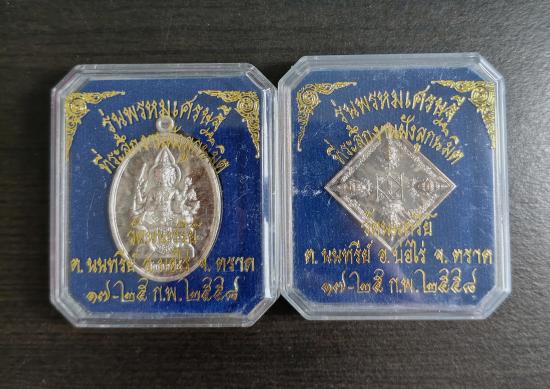 เหรียญพระพรหม เนื้อเงิน ปี 2558 เหรียญไข่-เหรียญข้าวหลามตัด (2เหรียญ)