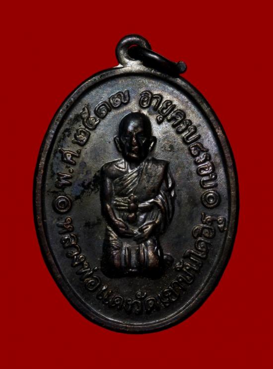บล็อคหน้าทองคำ เหรียญคุกเข่า หลวงพ่อแดง วัดเขาบันไดอิฐ รุ่นสุดท้าย ปี 2517 เนื้อทองแดง มีบัตรรับรอง