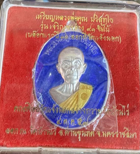 เหรียญจัมโบ้ หลวงพ่อคูณ ปริสุทฺโธ รุ่นเจริญพรล่าง91 เนื้อเงินลงยาสีน้ำเงิน หมายเลข142 (เหรียญเงินหน้าทองคำหนัก37.2กรัม มีกลองครับ