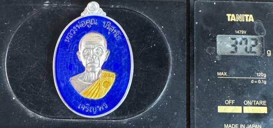 น้ำหนักเหรียญเงินลงยาสีน้ำเงิน37.2กรัมครับ