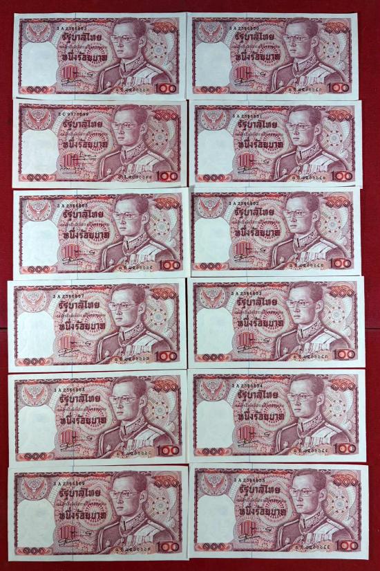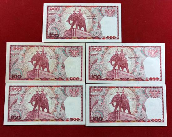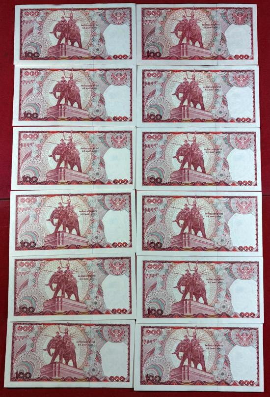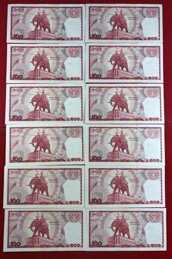 ธนบัตร 100 บาท แบบที่ 12 หลังสมเด็จพระนเรศวรมหาราชทรงช้างศึก หลังช้างแดง จำนวน 29 ใบ สภาพสวยตามรูป