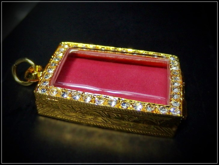 ชื่อพระเครื่อง ตลับเงินชุบทองเพชรล้อมใส่พระสมเด็จ