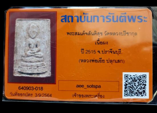 พระผงสมเด็จสันติสุข วัดหลวงปรีชากูล จ.ปราจีนบุรี ปี 2515 เนื้อผง พร้อมใบการันตี หลวงพ่อเอียปลุกเสก สายตรงชอบลองให้ราคาดู ครับ