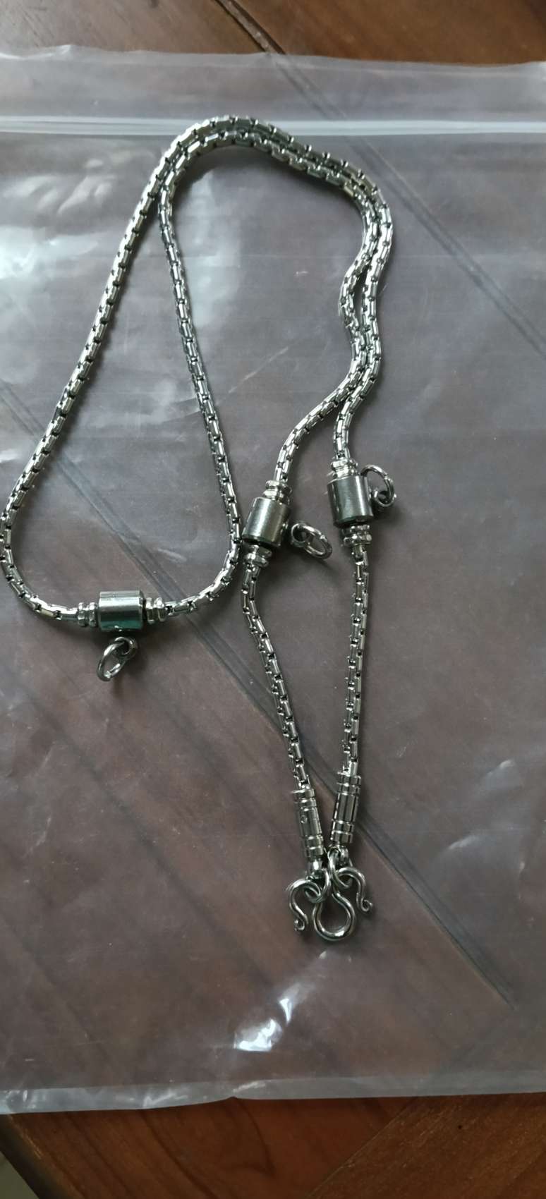 สร้อยสแตนเลสลายผ่าหวายตัน แขวนพระ 4 องค์ ความยาว 26 นิ้ว