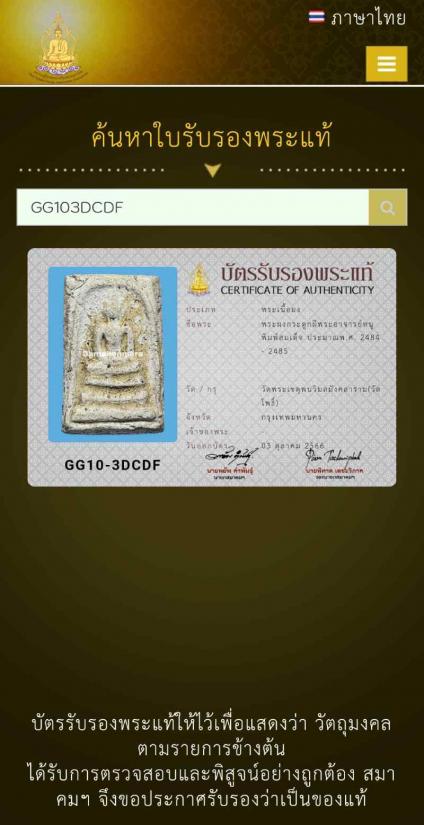 พระผงกระดูกผี วัดโพธิ์ท่าเตียน พิมพ์พระสมเด็จ มาพร้อมบัตรสมาคม