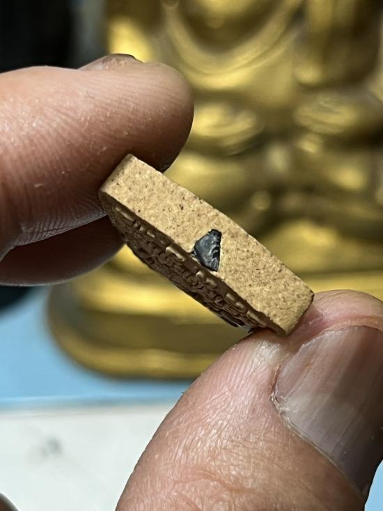 พระผงหลังสิงห์ แบบพิเศษฝังตะกรุดเงิน เนื้อโทนเข้ม ผสมผง5รอบ ปี34 หลวงพ่อเกษมเขมโก