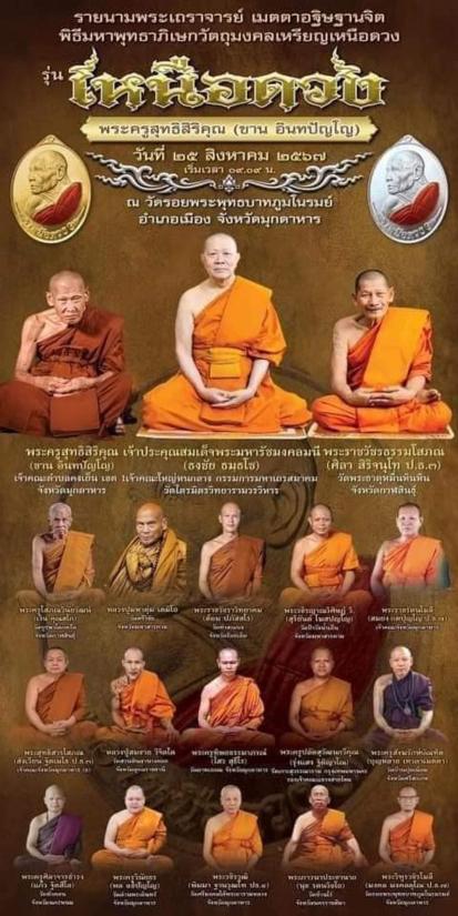 เหรียญเหนือดวง หลวงปู่ขาน อินทปัญโญ จ.มุกดาหาร หลวงปู่มหาตุ่ม หลวงปู่มหาศิลา พระอาจารย์สุริยันต์ พระอาจารย์ต้อม หลวงปู่เวิน ท่านเจ้าคุณธงชัย ร่วมปลุกเสกพิธีใหญ่