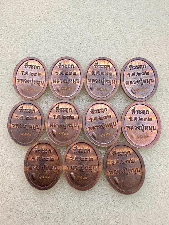 เหรียญเม็ดแตง หลวงปู่หมุน วัดบ้านจาน รุ่น 119 ปี ร.ศ.232 เนื้อทองแดง มี 11 เหรียญ |
