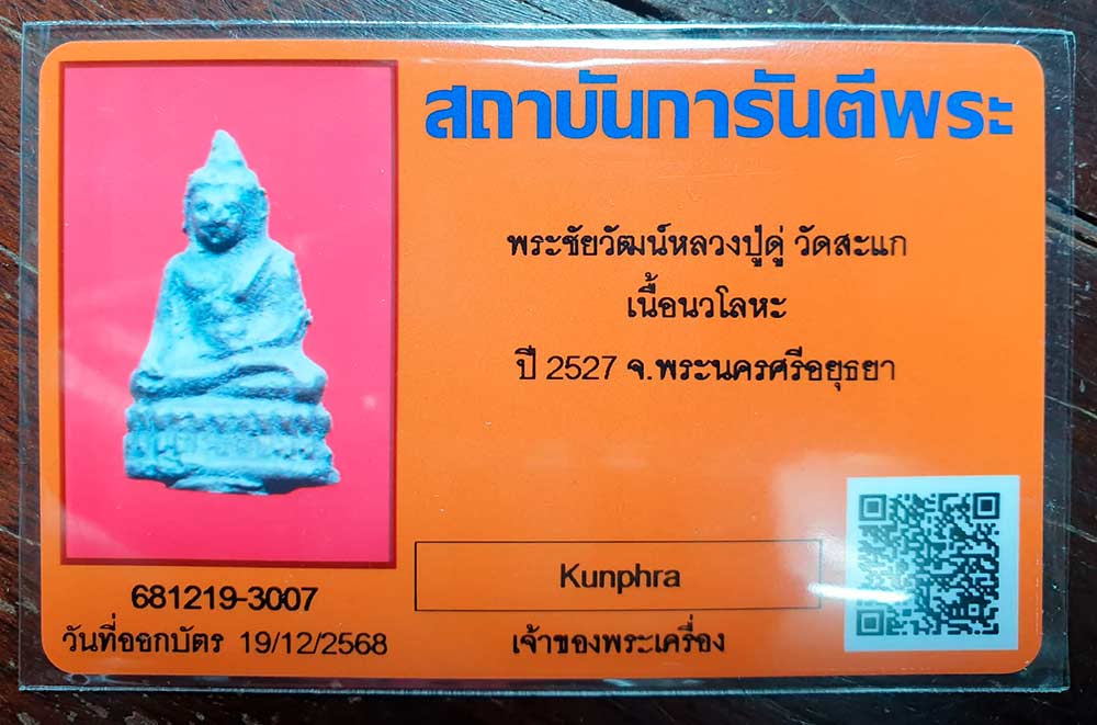 พระชัยวัฒน์ หลวงปู่ดู่ พิมพ์สุจิตโต วัดสะแก ปี 2527 สวยเดิมๆ หายาก มีประวัติในพิพิธภัณฑ์หลวงปู่ชัดเจน เคาะเดียวแดง 3500 บาท
