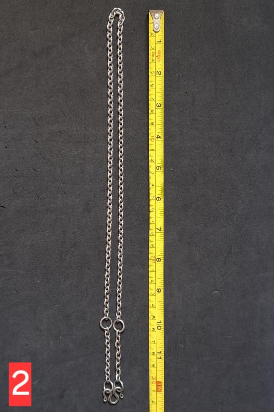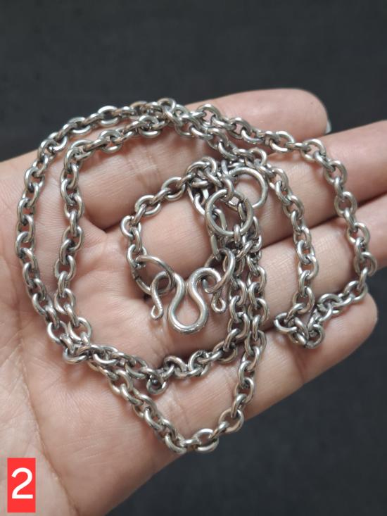 วัดใจ No.2 สร้อยเลสเก่า ตราลูกศร ลายโซ่ ห้อยพระได้3องค์ ยาว2ฟุตครับ |