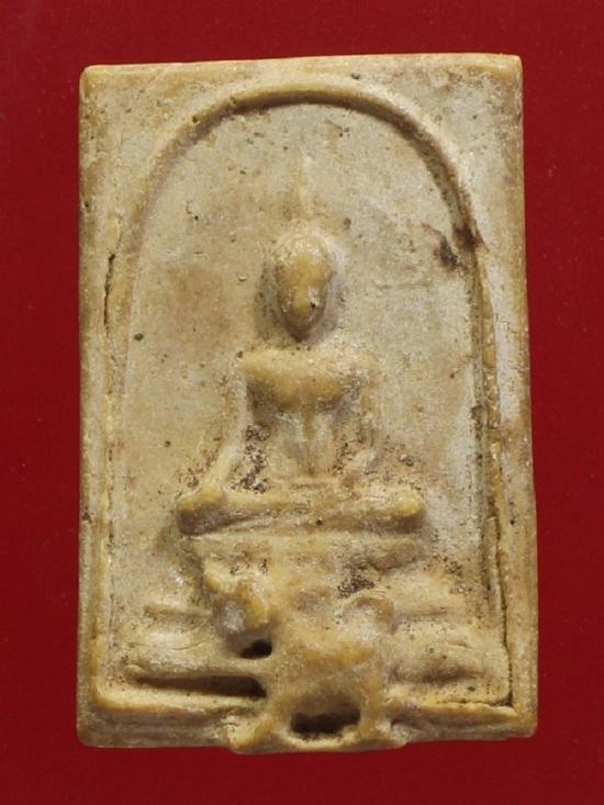 ด้านหน้า: เป็นรูปพระสมเด็จประทับนั่งบนฐานปูน ซึ่งมีรูป "สิงห์" อยู่ที่ฐานชั้นล่างสุด