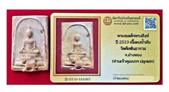 ท่านเจ้าคุณนรฯ ปลุกเสก พระสมเด็จทรงสิงห์ ปี 2513 เนื้อผงน้ำมัน วัดศีลขันธาราม + บัตรรับรอง
