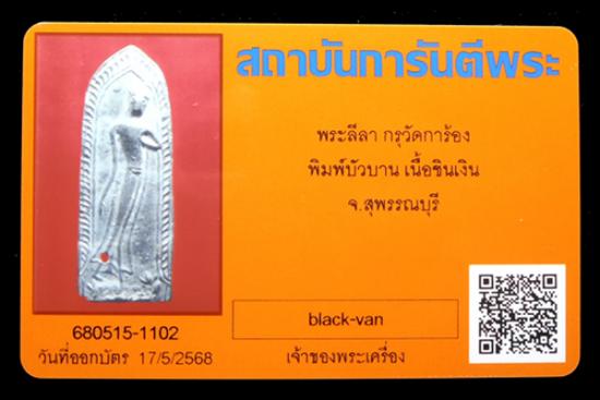 พระลีลาบัวบาน เนื้อชินเงิน กรุวัดการ้อง จ.สุพรรณบุรี พร้อมบัตรรับรอง G-pra ครับ