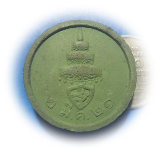 100 พระผงจันทร์ลอย สมเด็จพระสังฆราช(วสน์) วัดราชบพิธ หลังฉัตร เนื้อผงสีเขียว พศ. 2521 ลป.โต๊ะปลุกเสก