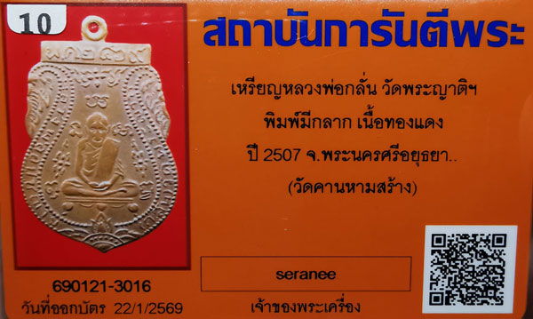 เหรียญหลวงพ่อกลั่น วัดพระญาติ พิมพ์มีกลาก เนื้อทองแดง ปี2507 จ.พระนครศรีอยุธยา (วัดคานหามสร้าง) + บัตรG-pra สภาพเดิมค่ะ |