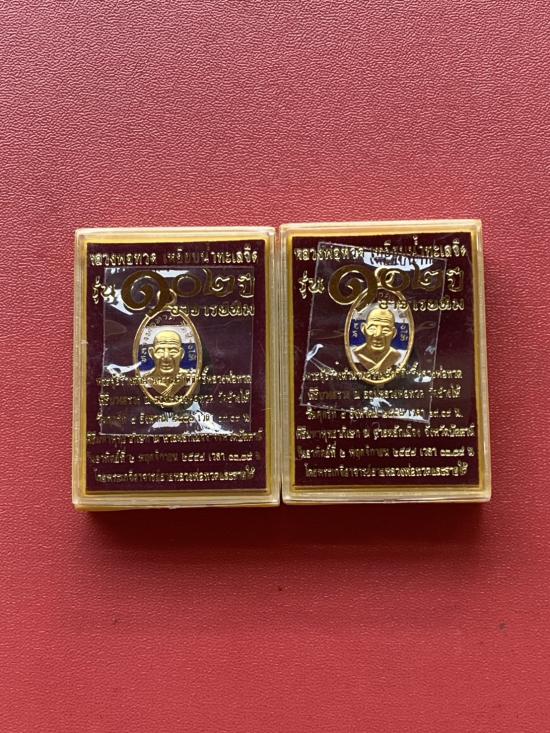 เคาะเดียวแดง เม็ดแตง 2องค์หลวงปู่ทวด รุ่น102ปีอาจารย์ทิม เนื้อชุบทองลงยาสีธงชาติ |