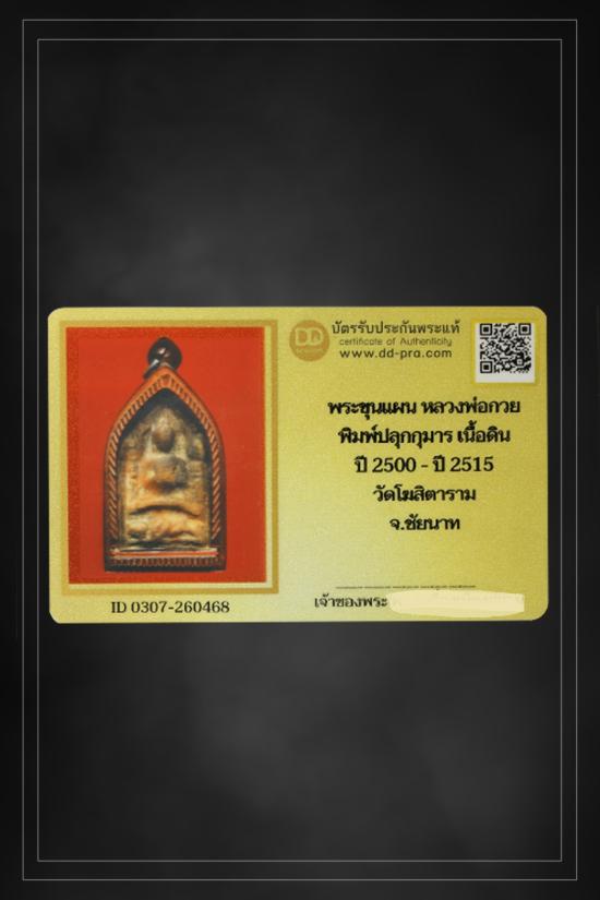 พระขุนแผนหลวงพ่อกวย พิมพ์ปลุกกุมารทอง ปี 2500-ปี 2515 เนื้อดิน วัดโฆสิตาราม จ.ชัยนาท + บัตรรับประกันพระแท้