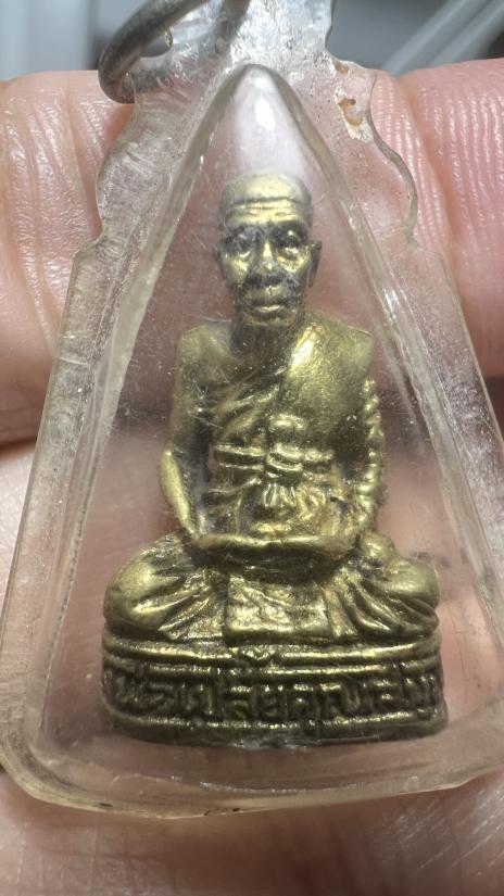 รูปหล่อหลวงพ่อเปลี้ย วัดชอนสารเดช จ.ลพบุรี รุ่นสร้างกำแพง ปี 2539 เนื้อทองเหลือง อุดกริ่ง |