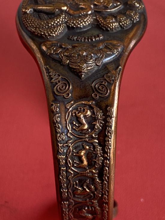 เคาะเดียวแดง กำไล องค์พ่อจตุคาม-รามเทพ รุ่นมงคลจักรวาล เนื้อสำริด เลข 583 |