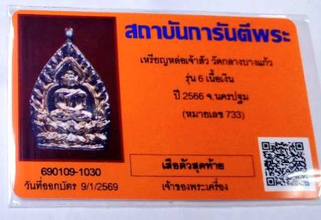 เจ้าสัว6 หมายเลข 733 เลขสวยวัดกลางบางแก้ว จ.นครปฐม รุ่น6เนื้อเงิน #พิมพ์ใหญ่ ผิวเดิมๆ กระจก ขาวๆใสๆขึ้นพรายชมพูบางๆโค๊ดคมชัดลึก พระหล่อคมลึกสมบูรณ์พร้อมบัตรจีพระพร้อมกล่องและบัตรเลี่ยมพลาสติกพร้อมใช้