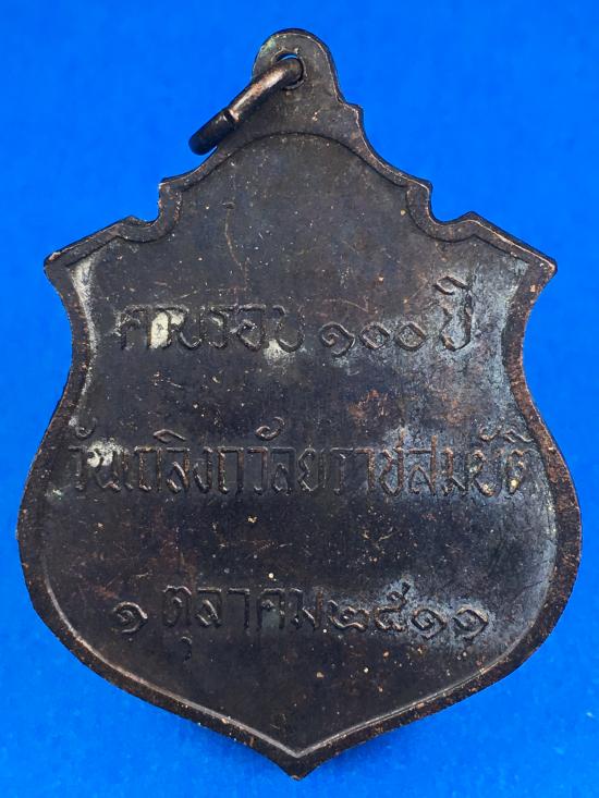 ด้านหลัง: มีตราสัญลักษณ์และข้อความระบุวาระการสร้าง 100 ปี (2411-2511)