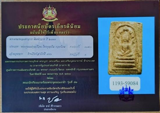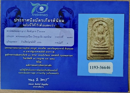 พระผงมงคลมหาลาภ พิมพ์กลาง เนื้อเขียวก้านมะลิ ปี 2499 (คุณแม่บุญเรือนอธิษฐานจิต) เลี่ยมทองพร้อมใช้ รางวัลที่ 1 งานศูนย์ราชการ