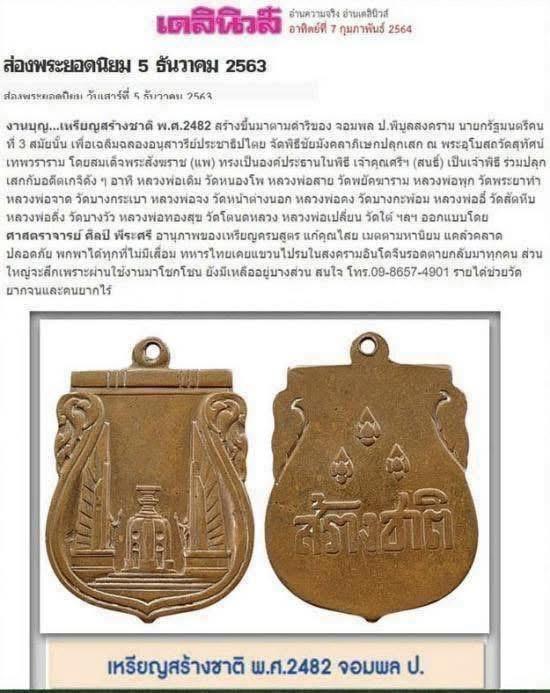 เหรียญสร้างชาติ ที่ระลึกการสร้างอนุสาวรีย์ประชาธิปไตย พ.ศ. 2482 เนื้อทองแดง พิธีใหญ่ หลวงพ่อจาด,หลวงพ่อจง, หลวงพ่อคง, และ หลวงพ่ออี๋ ร่วมปลุกเสก
