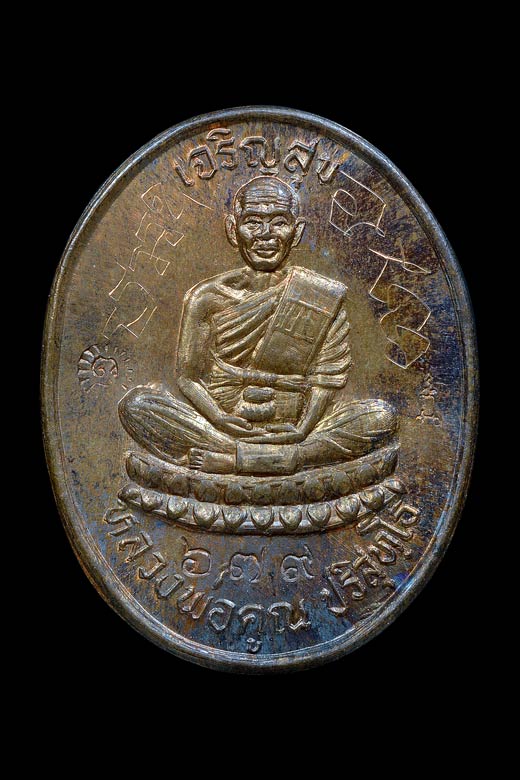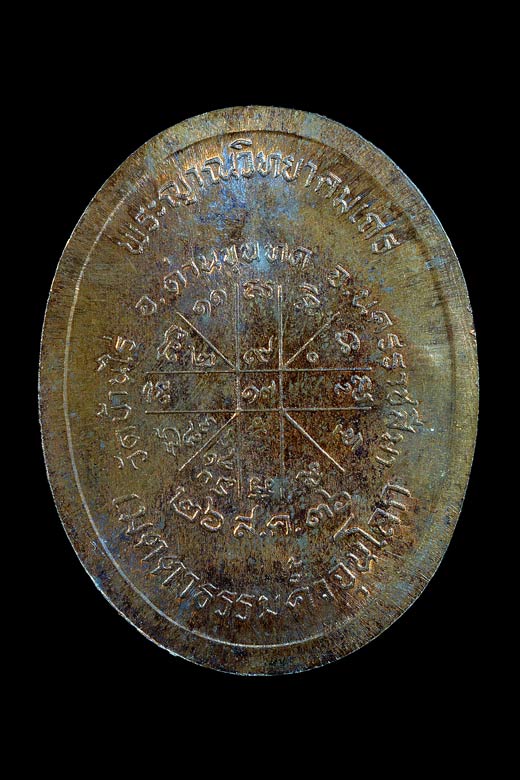 เหรียญ รุ่น เจริญสุข ( เนื้อนวโลหะ ) หมายเลข 679 พ.ศ.2536 ( กล่องเดิม , จารยันต์อักขระ " มะอะอุ " " ยานะ ")