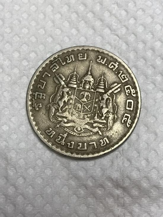 วัดใจ /// เหรียญบาทขวัญถุง หลังตราแผ่นดิน ปี2505 ตอกโค๊ต ไม่ทราบที่