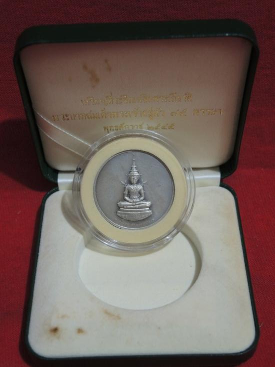 พระแก้วมรกต ทรงเครื่องฤดูร้อน หลัง ภปร เนื้อเงินรมดำพ่นทรายพิเศษ ที่ระลึกเฉลิมพระเกียรติ 75 พรรษา ในหลวง รัชกาลที่9 ธนารักษ์จัดสร้าง พ.ศ.2545 พร้อมกล่อง