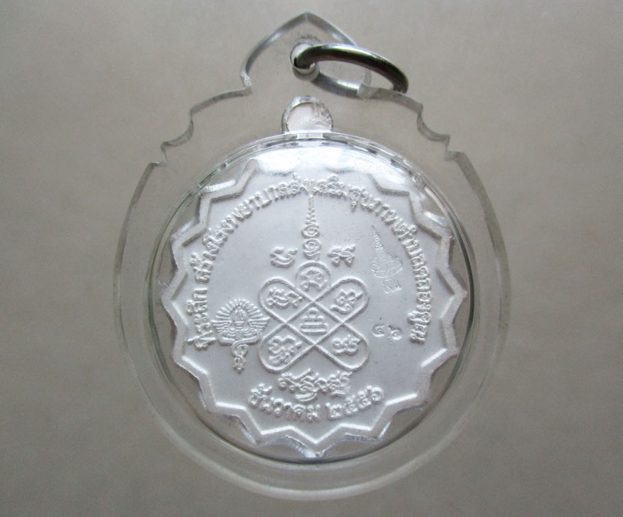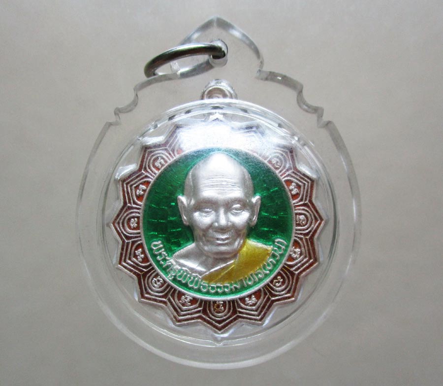 เหรียญพิมพ์พัดยศ หลวงพ่อหวั่น กุศลจิตฺโต วัดคลองคูณ ที่ระลึกสร้างโรงพยาบาลส่งเสริมสุขภาพตำบล พ.ศ.2556 เนื้อเงินลงยา 3 สี ตอก 3 โค๊ต ตอกเลข เลี่ยมกันน้ำพร้อม !!